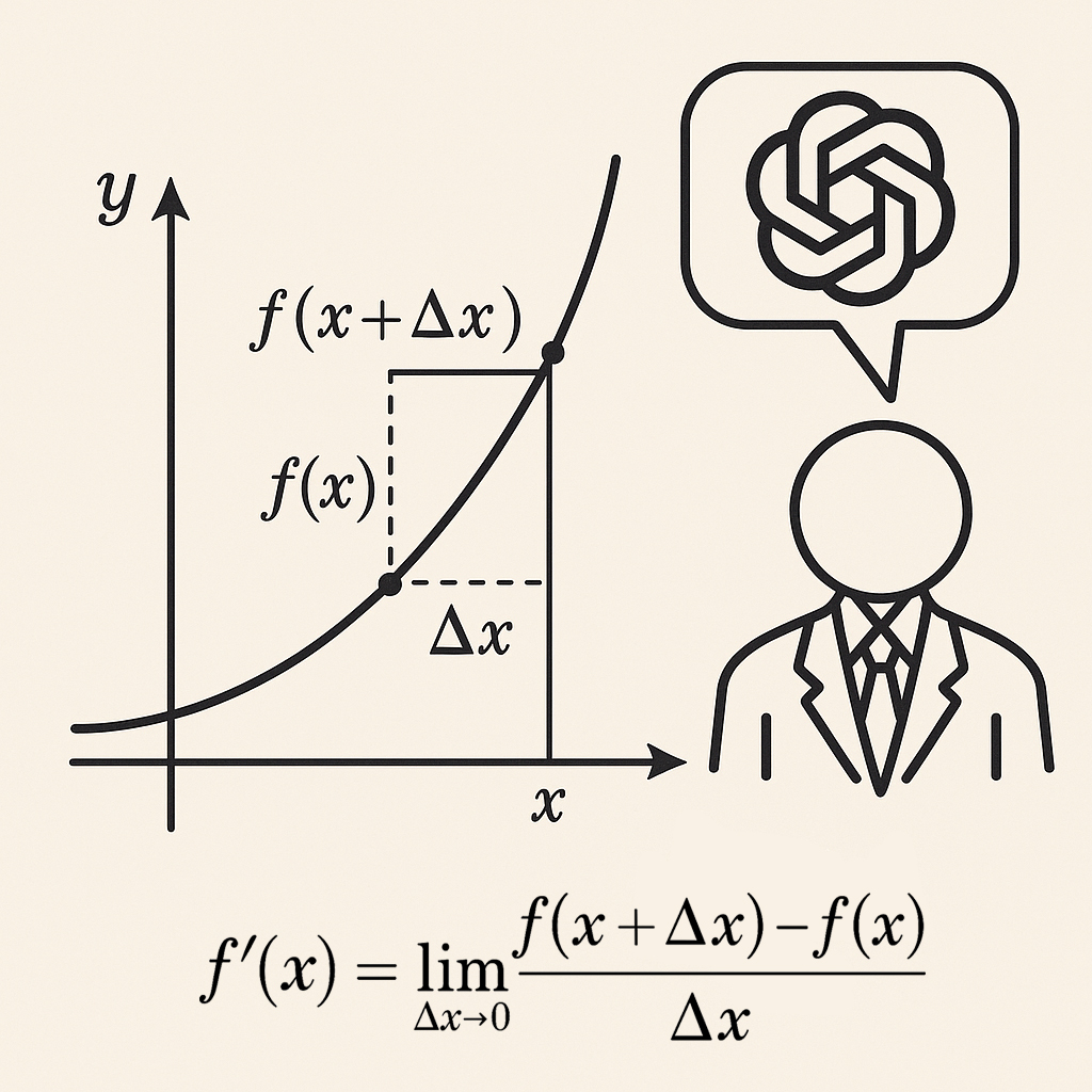 ![]() | 微分法についてのChatGPTとの対話 [2025/05/04 12:05] 真田 透(このブログの主宰者)の問い: 関数 f(x)における x の2点間の距離と、その間の変化量の平均値を示す式において、分子・分母... |